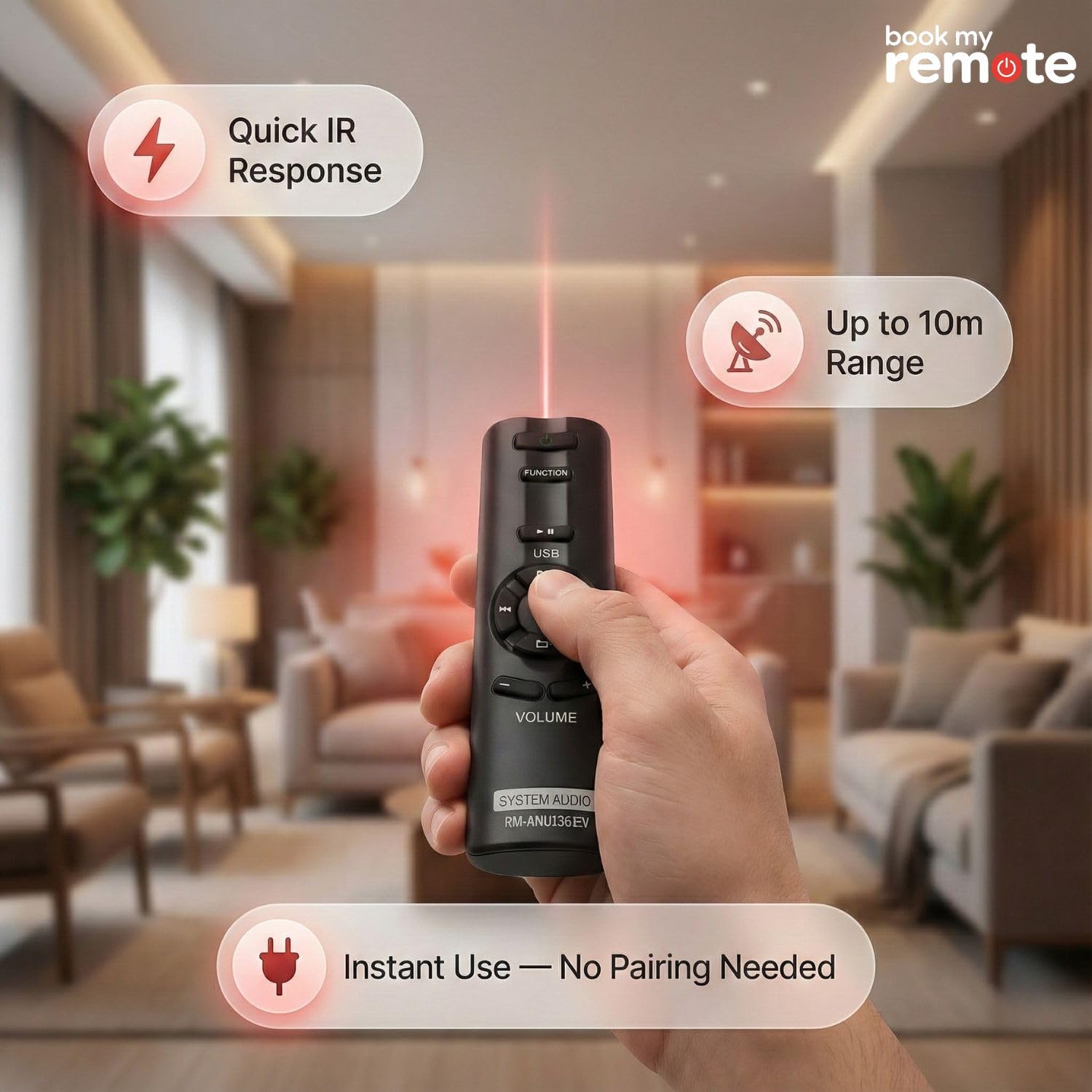 Restore Full Control to Your Audio System with Book My Remote | Is your original Sony Home Theater remote lost, broken, or not working? The Book My Remote replacement controller is the perfect solution. Designed to match the signal frequency of Sony Multimedia Speaker Systems, this remote offers a seamless experience without the high cost of a brand-new system. | Why choose this replacement? Many customers search for an “original remote” when theirs breaks. While this is a compatible replacement from Book My Remote, it is engineered to deliver the same performance, range, and button layout as the manufacturer’s unit. | Compatible Device List: | Sony SA-D40 / SA-D40 M2 | Sony SA-D20 (Exclusive Compatibility) | Sony SA-D10 | Sony SA-D100 | Sony SA-WMS10 | Sony SA-WID7 | Technical Specifications: | Type: Infrared (IR) Replacement Remote Control | Models Supported: RM-ANU156, RM-ANU136, RM-ANU136IEV | Material: Durable ABS Plastic | Connectivity: Wireless IR (No Bluetooth) | Maximum Range: 10 Meters